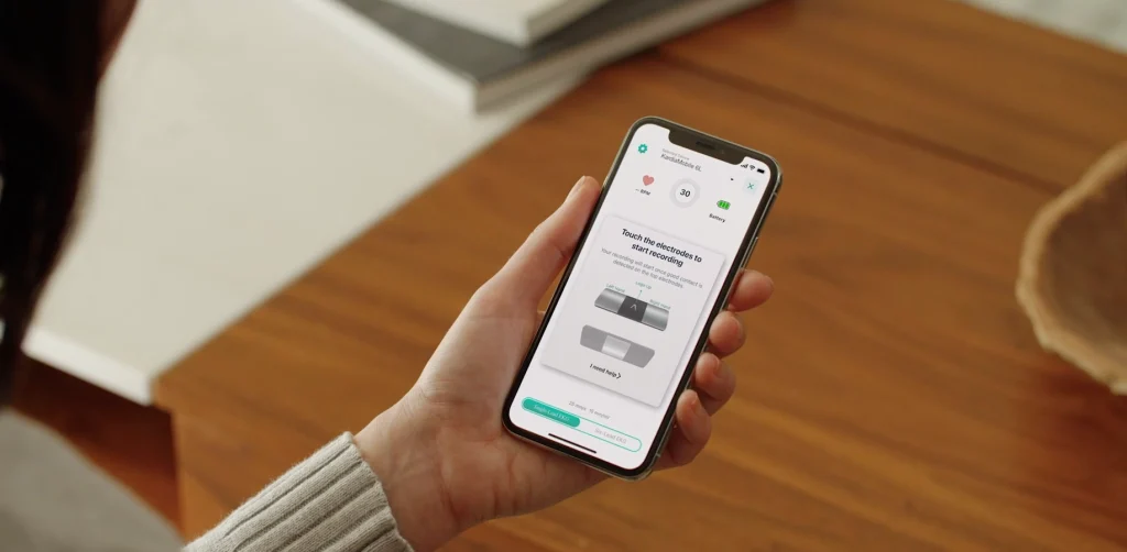 Без проводів, пластерирів та гелів – ідеально для швидкого ЕКГ під час візиту до лікаря або тривалого дистанційного моніторингу.